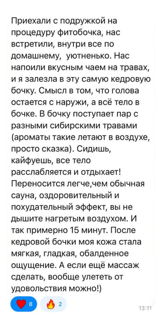 Фитобочка и ИК-сауна помогают телу восстановиться без усилий — как массаж, только быстрее и мягче.